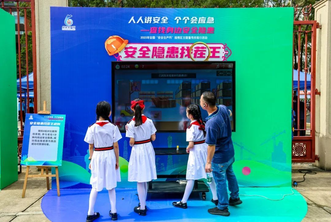在应急安全游戏区,“安全知识投壶”“安全隐患找茬王”“安全知识大转盘”等趣味游戏成为人气王。带着孙子参加活动的陈伯说:“这些游戏设计得巧!孩子玩得开心,不知不觉就记住了哪些地方容易出事,比如电源插头不用要拔掉,回家后都要检查一遍呢。”